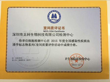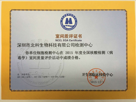 至今,北科生物自2011年以來(lái),已參加4次衛(wèi)生部臨床檢驗(yàn)中心組織的室間質(zhì)評(píng)活動(dòng),均獲得合格的《室間質(zhì)評(píng)證書(shū)》;今后,深圳細(xì)胞質(zhì)量檢測(cè)平臺(tái)將持續(xù)參加室間質(zhì)評(píng)項(xiàng)目,為客戶儲(chǔ)存的細(xì)胞及制備臨床級(jí)細(xì)胞提供更安全保障。