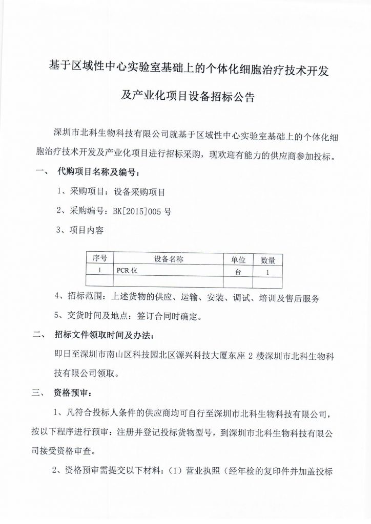 基于區(qū)域性中心實驗室基礎(chǔ)上的個體化細(xì)胞治療技術(shù)開發(fā)及產(chǎn)業(yè)化項目設(shè)備招標(biāo)公告