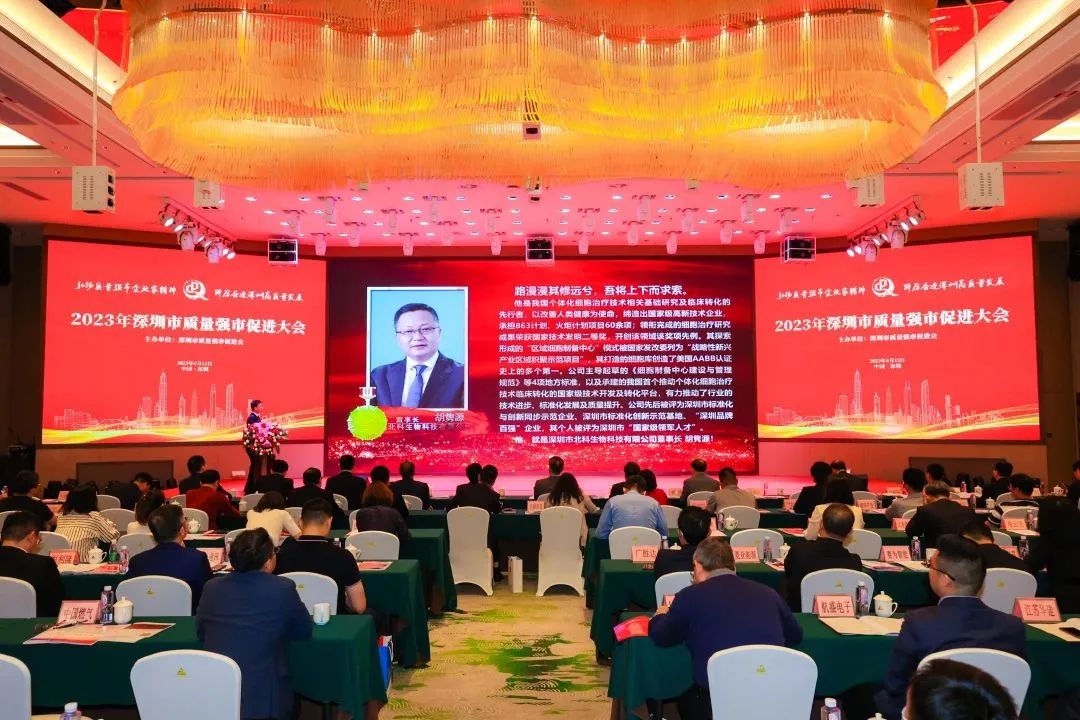 2023年4月12日,2023年深圳市質(zhì)量強(qiáng)市促進(jìn)大會(huì)暨深圳市質(zhì)量強(qiáng)市促進(jìn)會(huì)建會(huì)十周年慶祝大會(huì)在深圳銀湖國(guó)際會(huì)議中心舉行。大會(huì)對(duì)榮獲第九屆“深圳市質(zhì)量強(qiáng)市金質(zhì)獎(jiǎng)?wù)隆奔疤崦?jiǎng)的優(yōu)秀企業(yè)家進(jìn)行了隆重表彰,深圳市北科生物科技有限公司董事長(zhǎng)胡雋源博士榮獲第九屆“深圳市質(zhì)量強(qiáng)市金質(zhì)獎(jiǎng)?wù)隆保瑫r(shí)經(jīng)過(guò)會(huì)議審議,胡雋源博士增補(bǔ)成為深圳市質(zhì)量強(qiáng)市促進(jìn)會(huì)第三屆理事會(huì)副會(huì)長(zhǎng),北科生物成為深圳市質(zhì)量強(qiáng)市促進(jìn)會(huì)副會(huì)長(zhǎng)單位。